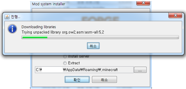 설치가 완료되면 확인 버튼을 누르고 다시 마인크래프트 런처를 실행시켜 봅시다.