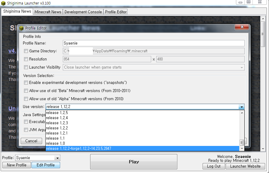 설치파일에 새롭게 1.12.2가 생겼습니다. 이제 플레이 버튼을 눌러 볼까요